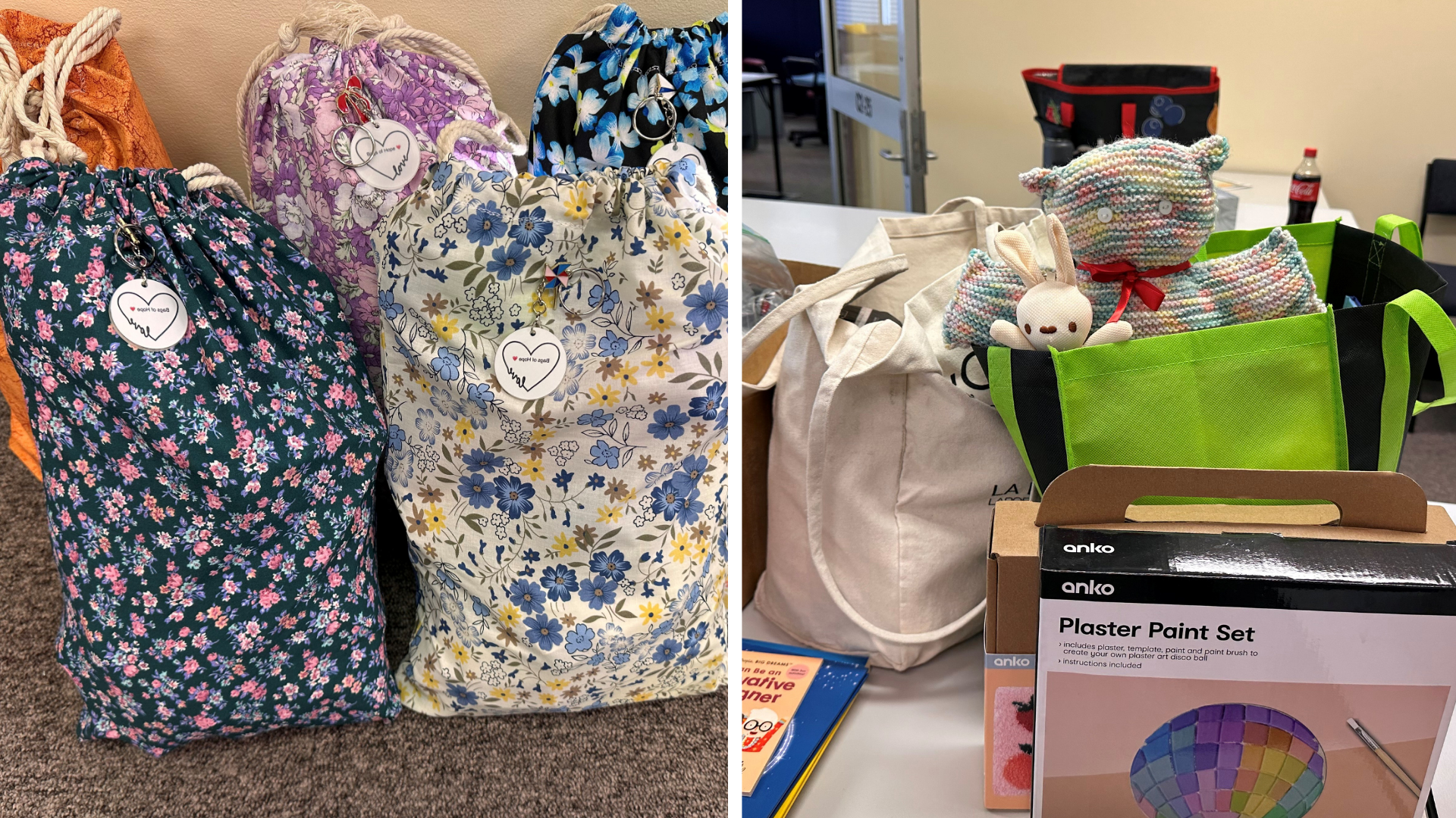 'Bags of Hope' tote bags, supporting victims of family and domestic violence.